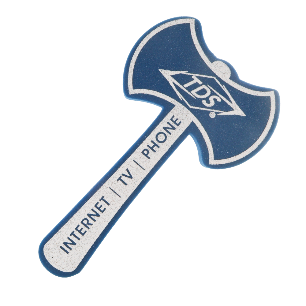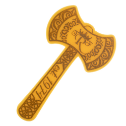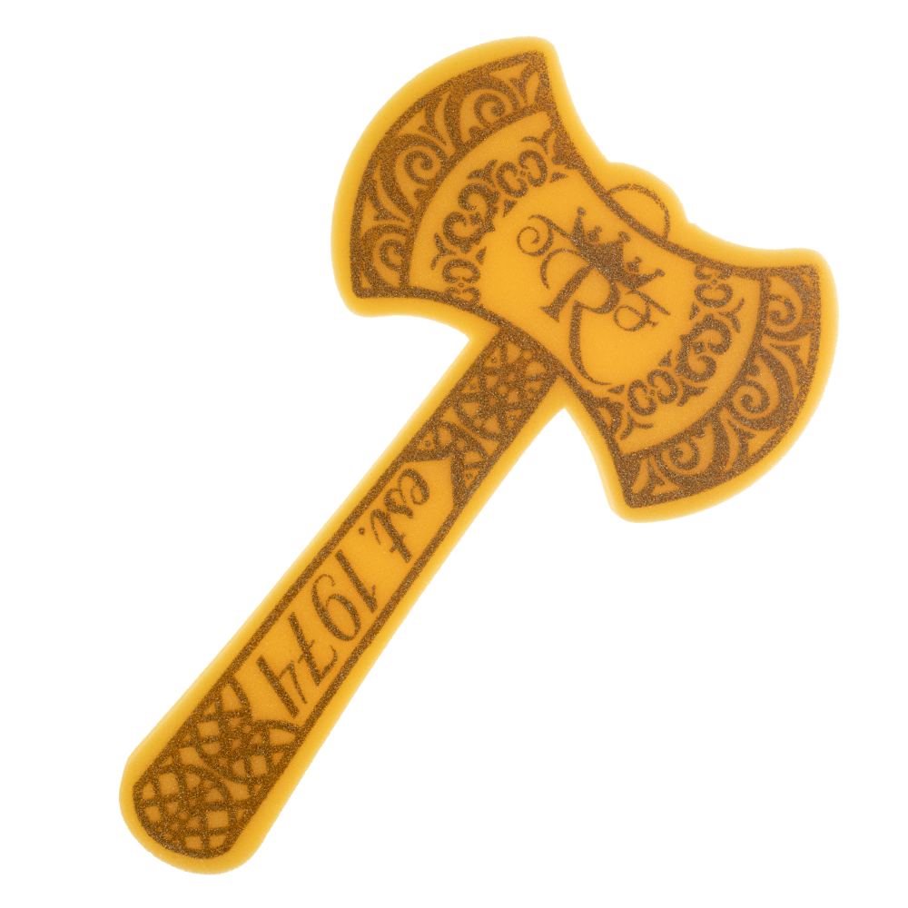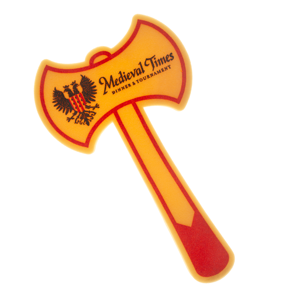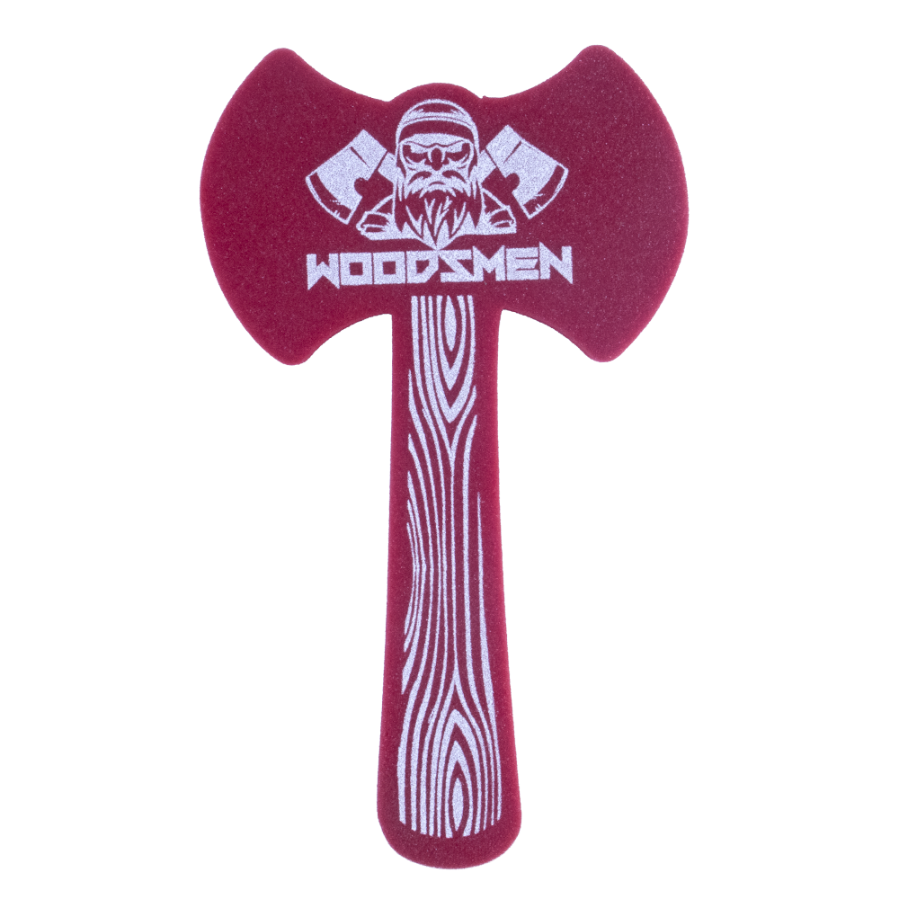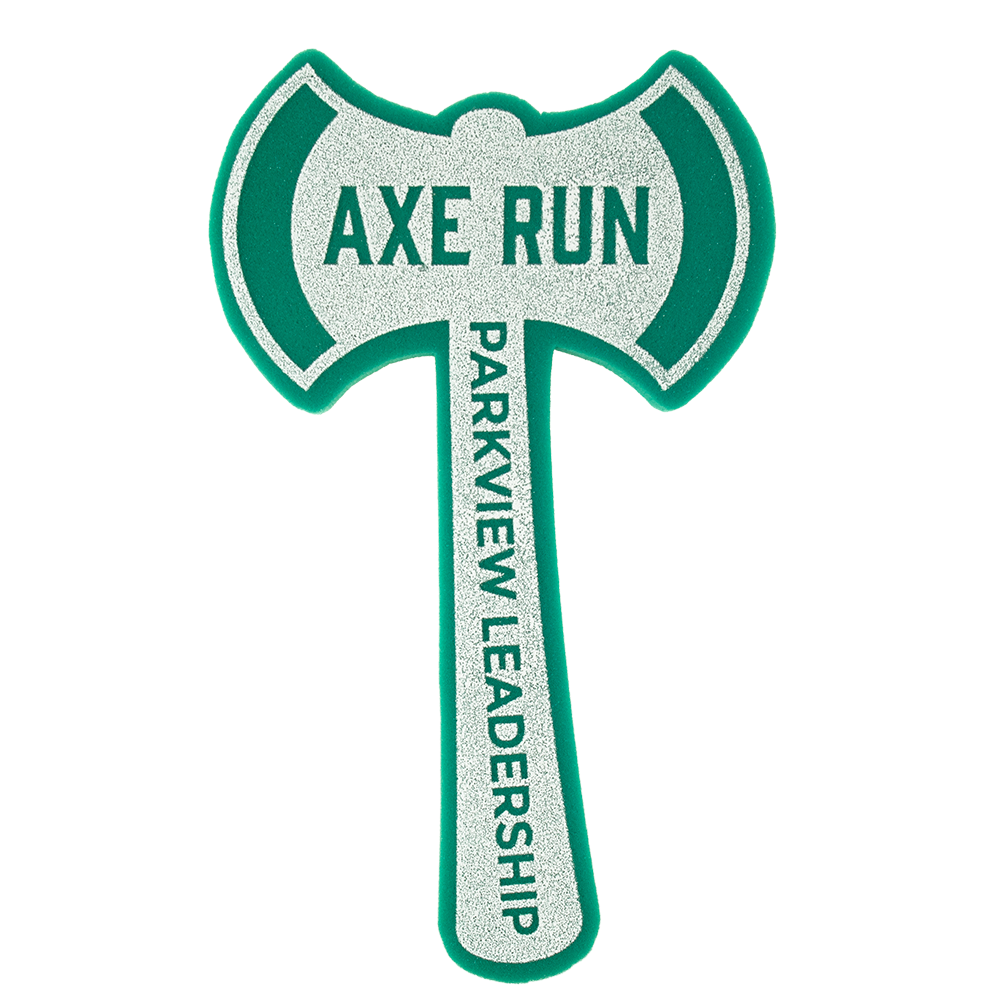 Prepare to go into battle for your team with this 18” Double Sided Axe foam waver! Prepare to go into battle for your team with this 18” Double Sided Axe foam waver! your team spirit in a fun and completely safe way. Your team slogan is imprinted on either 1 or 2 sides with high quality, waterproof ink. Made of flexible, fire-retardant polyurethane. Made in the USA.