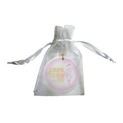 Elegant Ceramic Ornaments imprinted your own custom design in either four color process or spot color color on one or two sides. Approximately 3" in size, each ornament comes with it's own gold hang cord. Decorated in the USA.